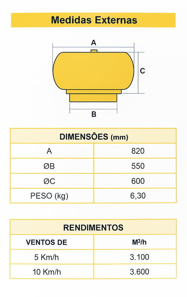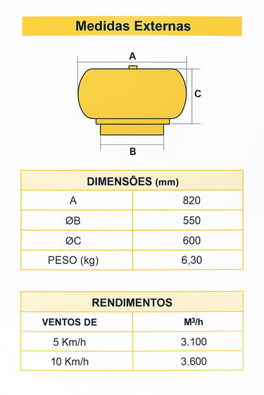 Nossos exautores trabalham com sistema auto desempenho na renovação do ar em qualquer ambiente, com rendimento altamente eficiente, utilizando-se da onergia eólica para obter uma vazão na ordem de 4. 100 mª/hora, superior a outros sistemas convencionais onde a exaustão natural não se desejáveis.